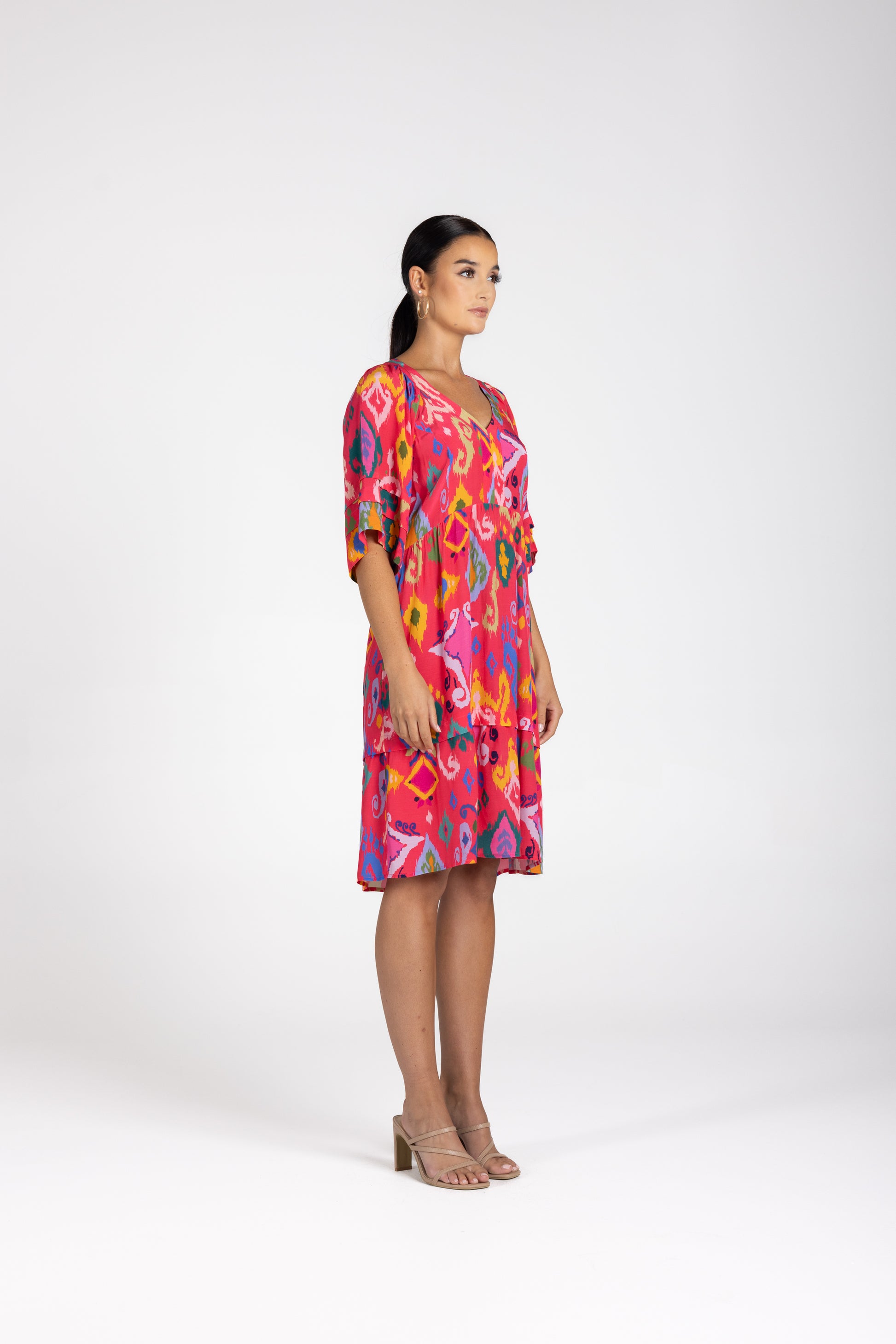 Dress it up with wedges or keep it casual with sandals — either way, this Ikat print dress is the perfect blend of comfort, colour, and chic simplicity.