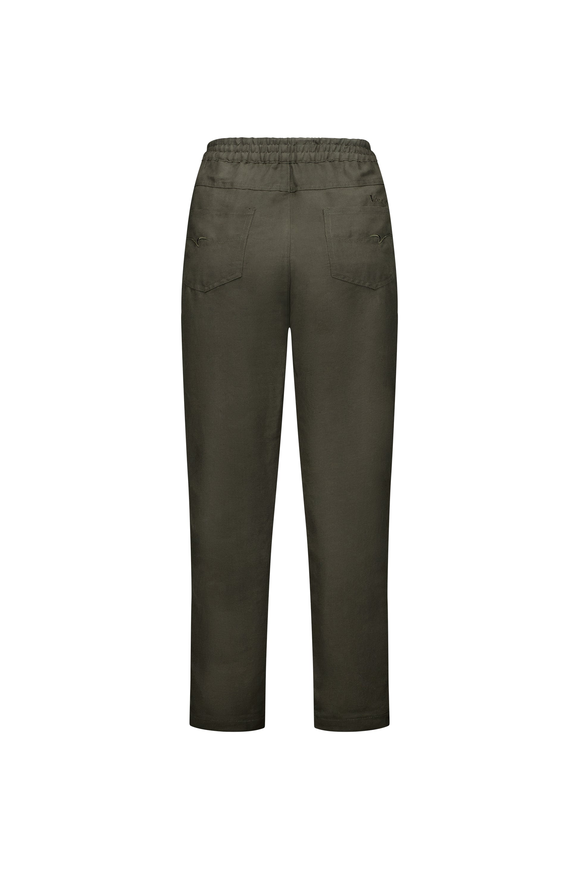 The Vassalli Slim Leg Ankle Grazer Pant in Khaki is where comfort meets style. Designed with a full elastic waistband and drawstring for the perfect fit, these pants move with you while keeping their sleek, slim-leg shape. Practical details like front and back patch pockets with signature stitching and subtle Vassalli embroidery add a polished touch.