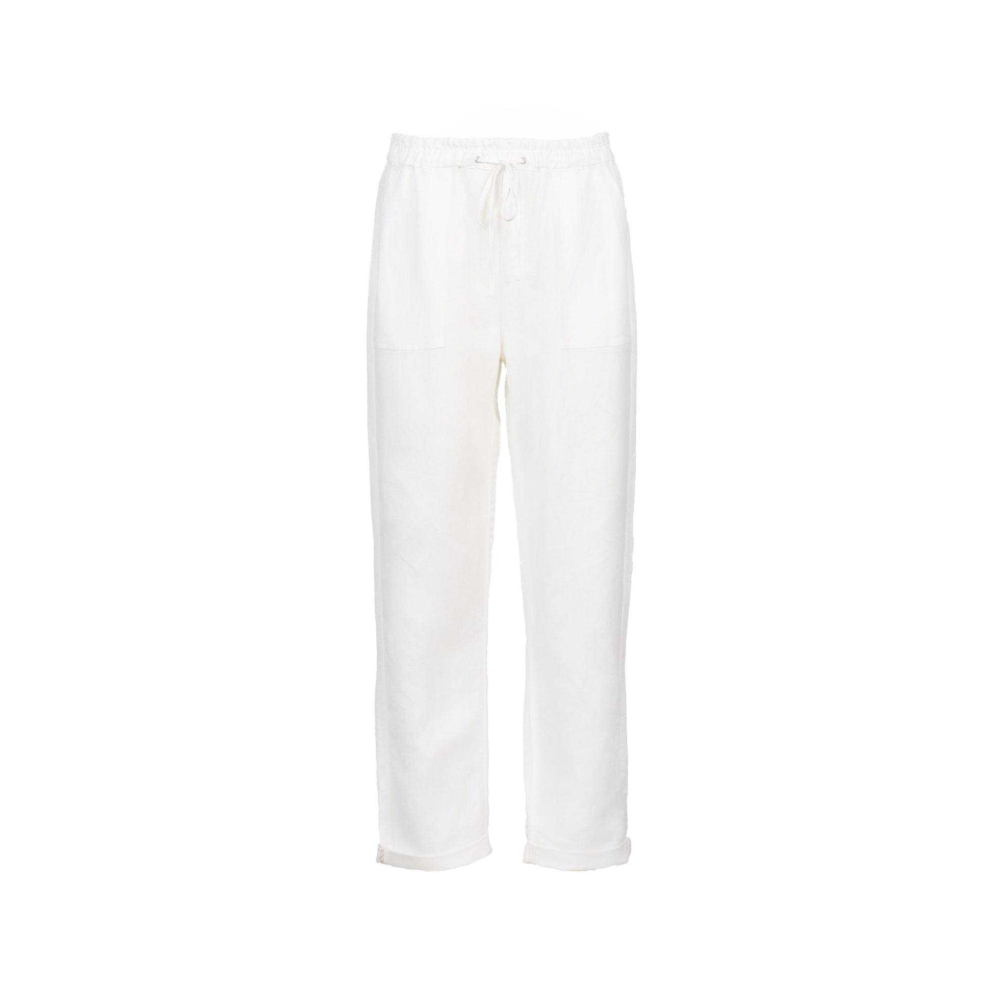 The Vassalli Slim Leg Ankle Grazer Pant in White is where comfort meets style. Designed with a full elastic waistband and drawstring for the perfect fit, these pants move with you while keeping their sleek, slim-leg shape. Practical details like front and back patch pockets with signature stitching and subtle Vassalli embroidery add a polished touch.