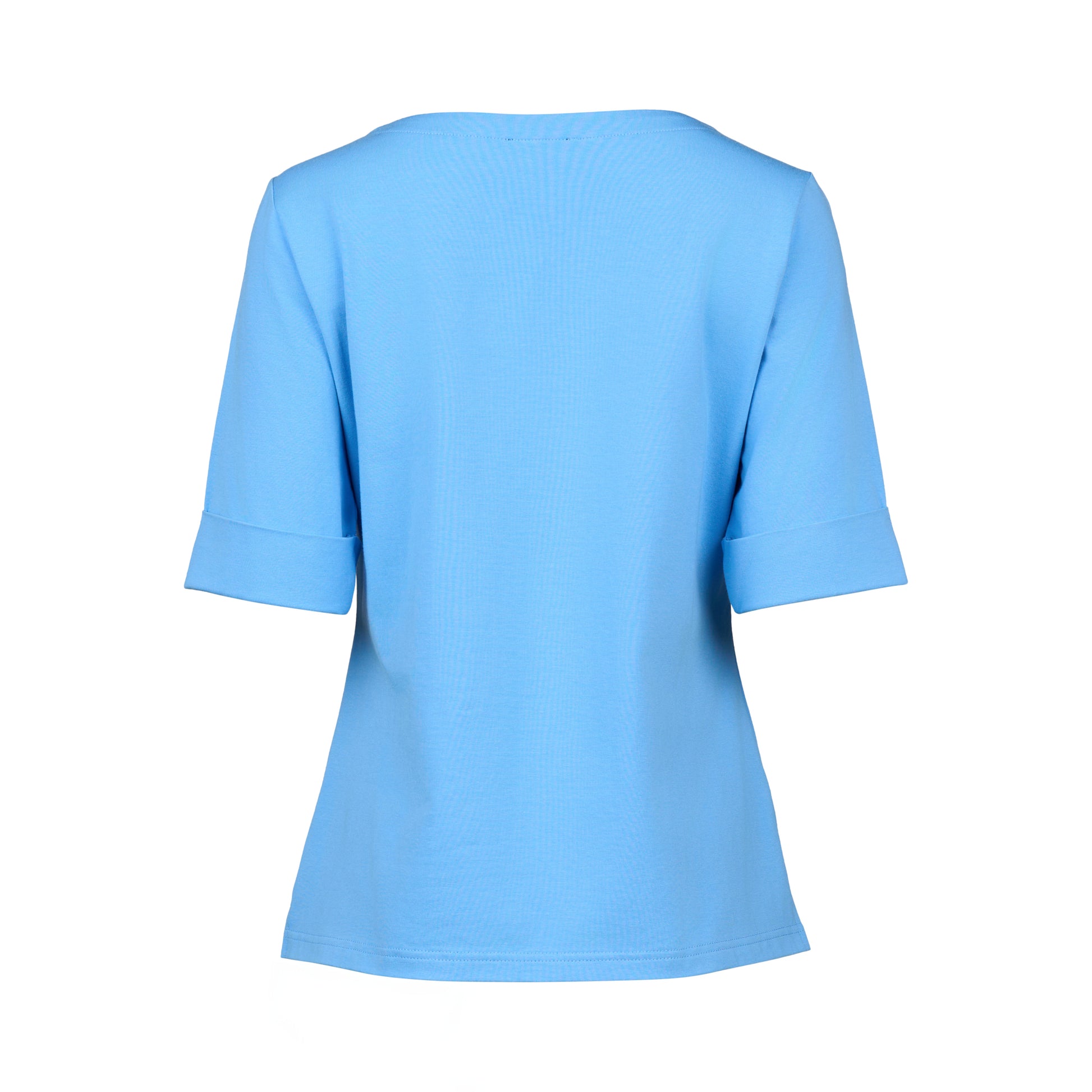 The V-Neck Top is a timeless wardrobe staple designed with both comfort and versatility in mind. Made from a soft cotton-elastane jersey, it offers just the right amount of stretch to keep you comfortable all day long without losing its shape. The relaxed fit makes it easy to wear, while the wide turned-up cuffed sleeves add a touch of modern style to this simple silhouette.